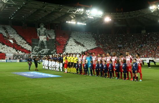 Ένας πυγμάχος που ρίχνει νοκ-άουτ τον αντίπαλο του, ήταν το θέμα του κόρεο των οπαδών του Ολυμπιακού, το οποίο εμφανίστηκε πριν την έναρξη του αγώνα με την Παρί Σεν Ζερμέν