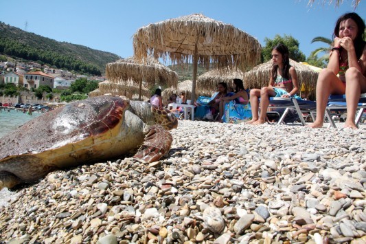 Μια προστατευόμενη χελώνα καρέτα-καρέτα, νεκρή από δίχτυα ψαρά, αντίκρισαν το πρωί της Πέμπτης (23-07-2015) οι λουόμενοι στη παραλία του Κιβερίου του νομού Αργολίδας.